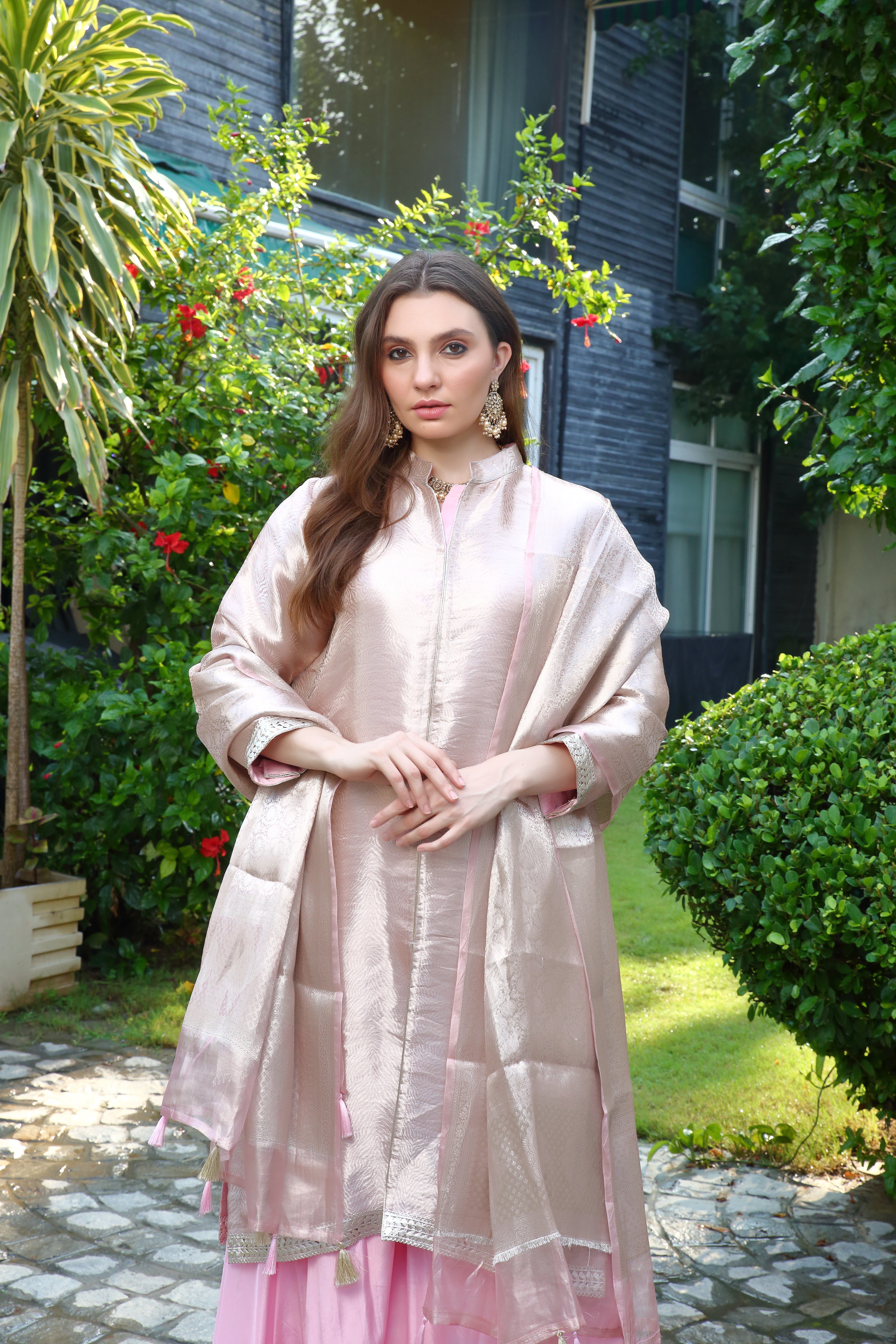 Dua sharara silk brocade- Pink