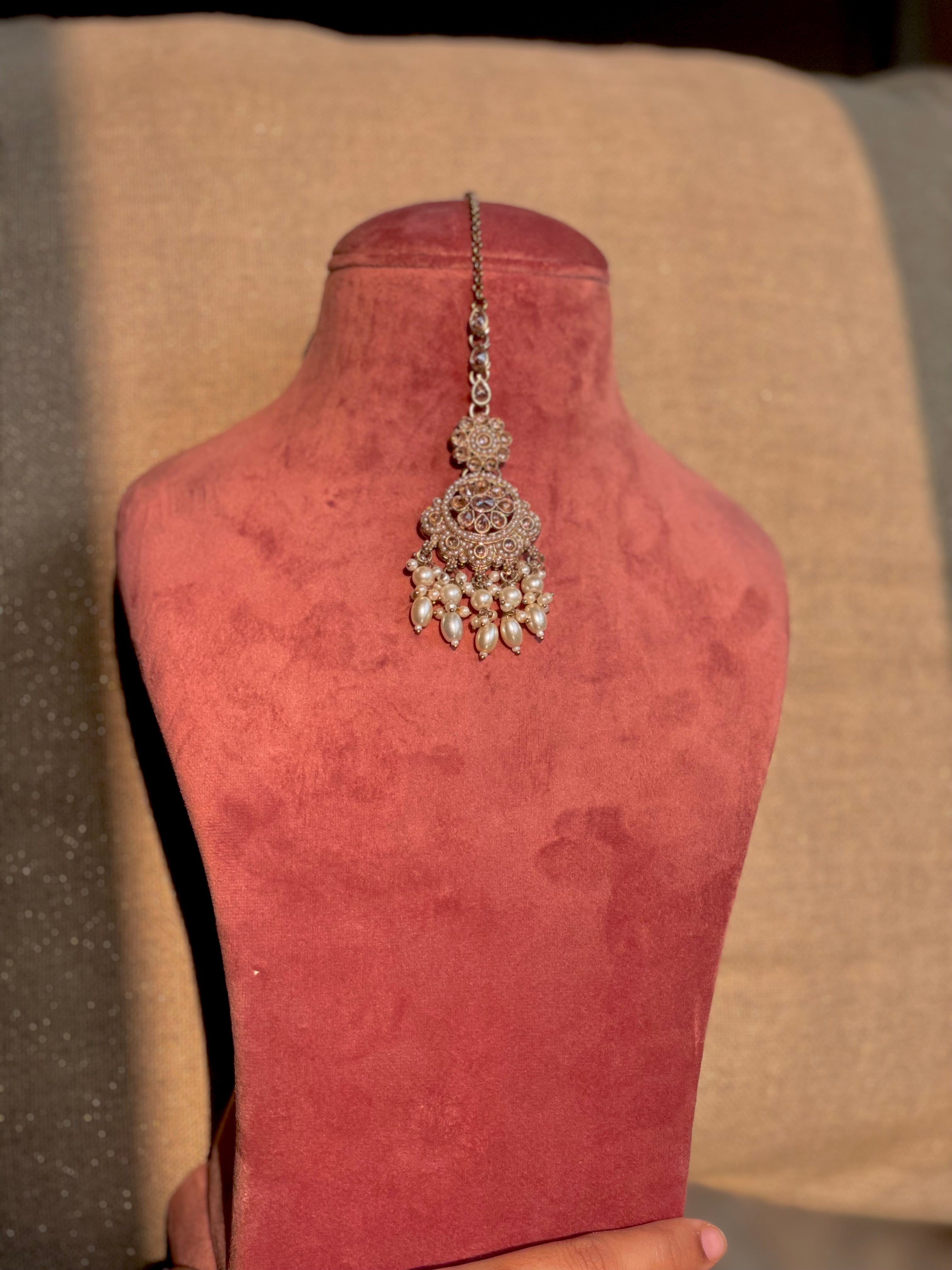 Classic round Kundan Maangtika edged with for a timeless design that blend is heritage with simplicity.