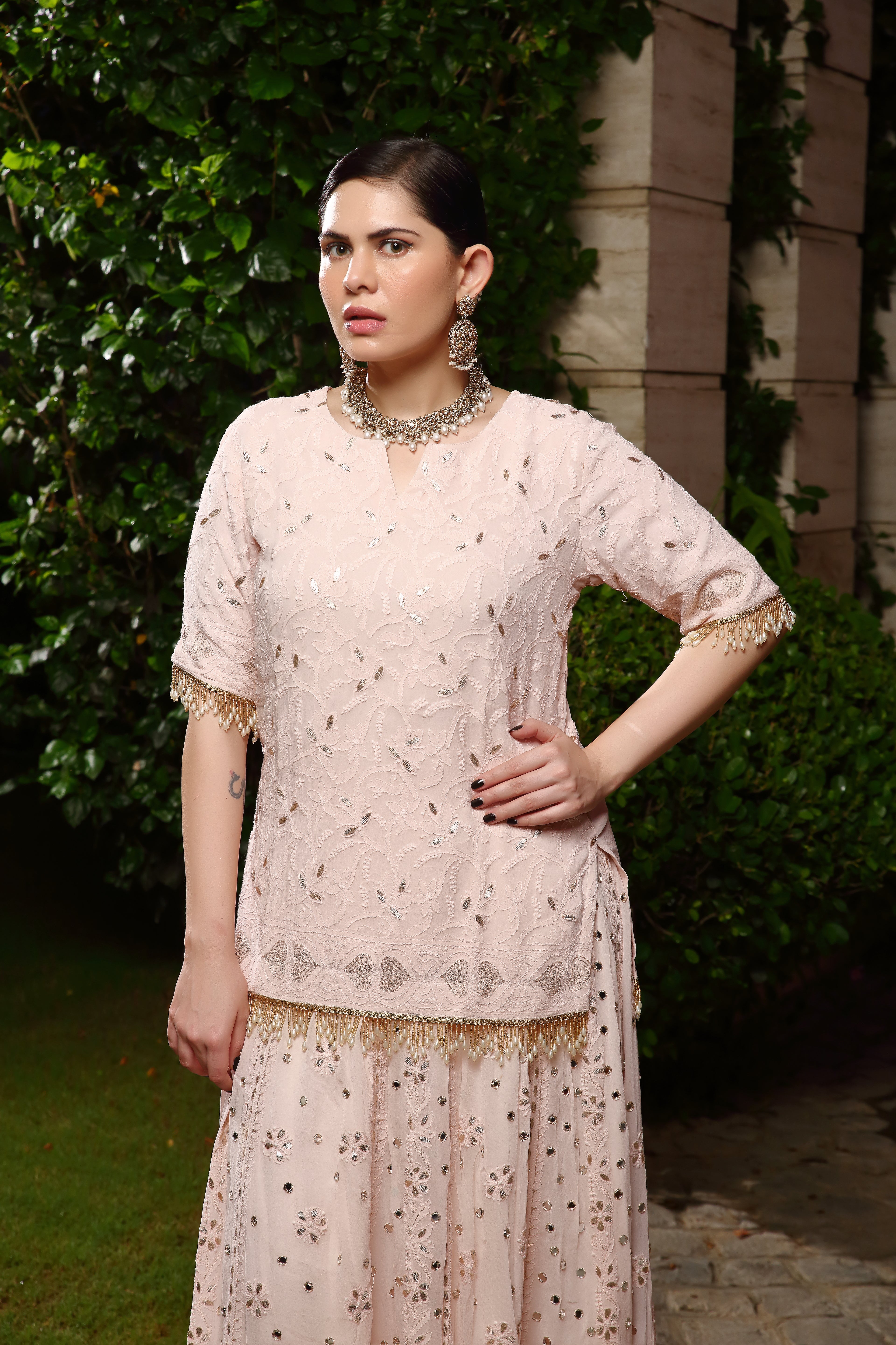 EMBROIDERY | Mirror work with Lucknawi detailing |