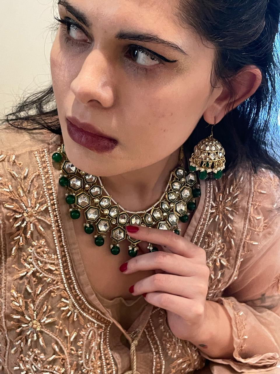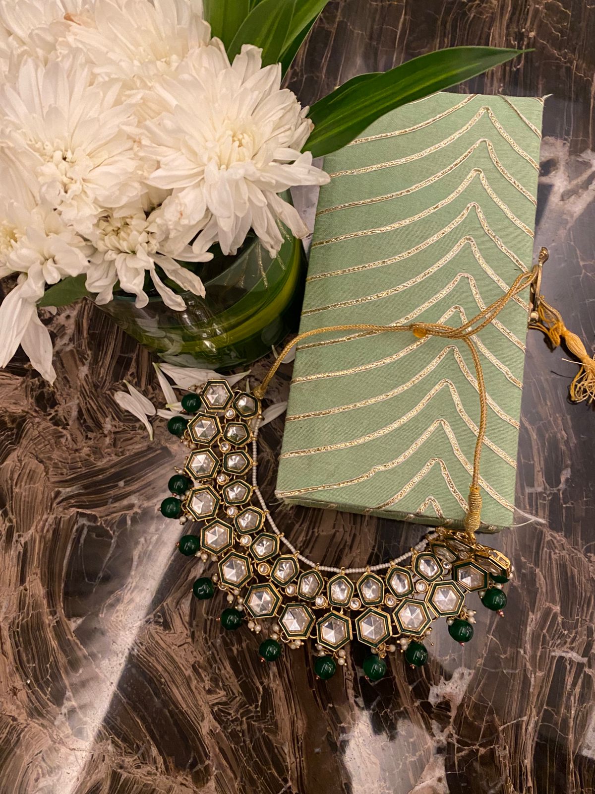 Elegant and stunning green and pearl necklace